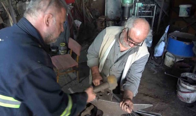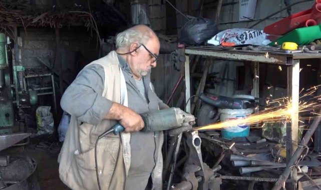 Adıyaman'da yaşayan Mustafa Uyan yarım asırdır sıcak demiri döverek tarım aletlerine dönüştürüyor.