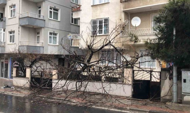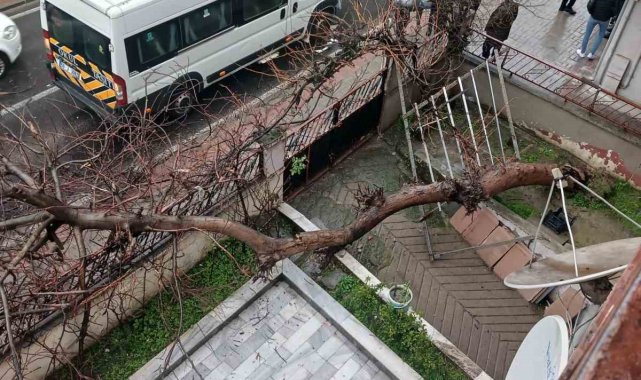 Tekirdağ Çorlu'da yarım asırlık ceviz ağacı, yolda seyreden servis minibüsünün üzerine devrildi.