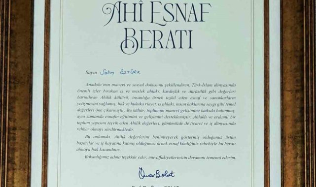 Sakarya Esnaf ve Sanatkarlar Odaları Birliği (SESOB) Başkanvekili Ali Bektaş ve Ticaret Bakanı Ömer Bolat'ın daveti üzerine Kırşehir'e giden Salim Öztürk, Cacabey Meydanı'nda düzenlenen 38. Ahilik Haftası kutlamalarına katıldı. Geçtiğimiz yıl Cumhurbaşkanı Recep Tayyip Erdoğan tarafından "Türkiye Yüzyılı'nın Emektarları Programı" çerçevesinde plaketle ödüllendirilen Öztürk, bu kez de Ticaret Bakanı Ömer Bolat'ın elinden Ahilik Esnaf Beratı aldı. Süpürge ustası Öztürk, aldığı beratın kendisi için büyük bir gurur olduğunu ifade ederek, mesleğini yaşatmaya devam edeceğini söyledi.