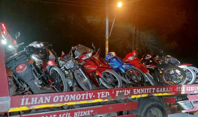 Akyazı ilçesinde bir motosiklet grubu yarış hazırlığına başladı. Motosikletlilerin peşinde olan Sakarya İl Jandarma Komutanlığı'na bağlı Akyazı ilçe trafik ekipleri de gençlerin yarış hayalini suya düşürdü. Jandarma ekipleri, Osmanbey Mahallesi'nde yarış hazırlığı yapan motosikletçilerin yarışını daha başlamadan sonlandırdı. Ekiplerce gerçekleştirilen operasyonda yarış hazırlığında olan birçok motosiklet çekiciye yüklenerek yediemin otoparkına çekildi. Motosikletlerden bazılarının trafikten men edildiği öğrenilirken, yarış hayalleri suya düşen sürücülere ise yaklaşık 400 bin TL cezai işlem uygulandı. Öte yandan, ceza yiyen gençlerin çekiciye yüklenen motosikletlerinin önünde poz verdiği anlar da dikkatlerden kaçmadı.