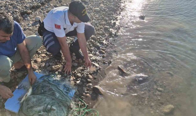 Tunceli Jandarma Komutanlığı'ndan yapılan açıklamada, "Tunceli ili merkez ilçesi Kanoğlu Mahallesi mülki sınırları içerisinde bulunan Uzuncayır Baraj Gölü kıyısında; 24.08.2025 günü saat 18.40 sıralarında, Merkez J.Asyş. Bot K.lığınca amatör balıkçılık yapan şahıslar kontrol edilmiştir. Kontrol esnasında B.Ö. İsimli şahsın kullanılması yasak olan 30 metre uzatma ağ iile amatör avcılık yaptığı tespit edilmiş, şahsa 3770 TL idari para cezası uygulanmıştır. Ele geçirilen 30 metre uzatma ağ Tunceli İl Tarım Müdürlüğüne teslim edilecektir. Uzatma ağ üzerinde yakalanan 8 adet canlı tatlı su kefali cinsi balık doğal yaşam alanı olan Uzunçayır Baraj gölüne bırakılmıştır" denildi.