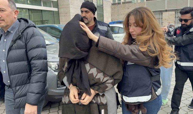 Samsun'da yasak ilişki yaşadığı sevgilisini boğazını keserek öldürdükten sonra polise teslim olan kadın ile oğlu ve kocası adliyeye sevk edildi.