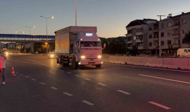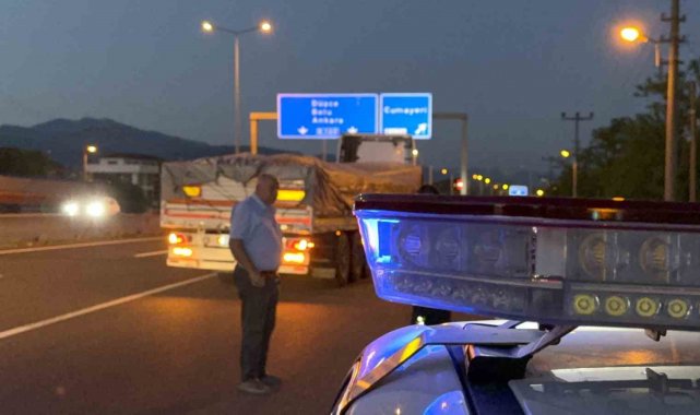 Kurban Bayramı tatili için memleketlerine giden araçların oluşturduğu yoğunluğu azaltmak için, büyük araçların geçişinin yasaklandığı Düzce'de, yola çıkan tır sürücüsüne polis ekipleri cezai işlem uyguladı.