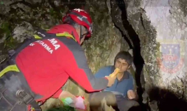 Gencin yerini tespit eden AFAD ekipleri gencin bulunduğu noktanın sarp kayalık ve ulaşımın imkansız olması nedeniyle Jandarma Komando Arama Kurtarma (JAK) timinden yardım istedi. Dağlık alanın diğer yanından dün öğlen saatlerinde tırmanışa başlayan JAK ekipleri yaklaşık 10 saatlik uğraş sonunda 4 gündür bölgede mahsur kalan S.K.'nin (29) yanına gece saatlerinde ulaşmayı başardı. Sığındığı oyukta kendisini kurtarmak için gelen JAK ekibini karşısında gören genç büyük mutluluk yaşarken, yapılan ilk kontrolde herhangi bir yaralanma olmadığı belirlendi.