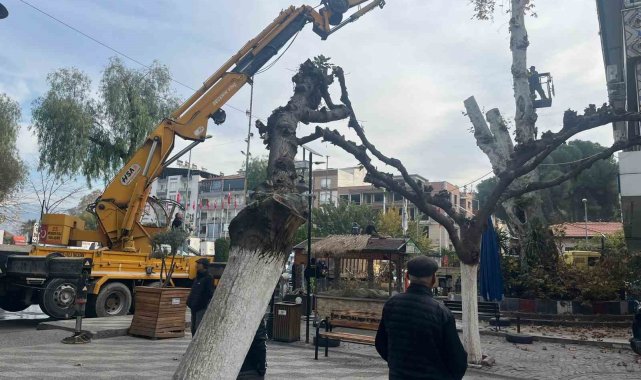 Aydın'ın İncirliova ilçesinde bulunan tarihi çınar ağacının devrilme riski taşıması nedeniyle belediye ekipleri tarafından budaması gerçekleştirildi.