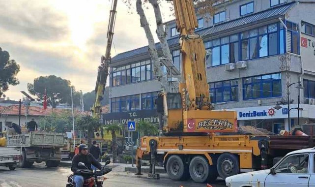 İncirliova Belediyesi önünde bulunan yaşı 200'e yakın olan tarihi çınar ağacı, fırtına çıktığında dalları kopup caddeye ve kaldırıma düşüyordu. Yoldan geçen vatandaşların kopan dallardan yaralanmaması için İncirliova Belediye Başkanı Aytekin Kaya'nı talimatı üzerine ekipler bugün harekete geçti. Vinç yardımı ile çınar ağacının dalları budandı. Oldukça hassas bir budama işlemi yapan belediye ekipleri, hiç kimseye zarar vermeden çınarın budamasını gerçekleştirdi. Çevredeki vatandaşlar ise budama anlarını meraklı gözlerle izledi.