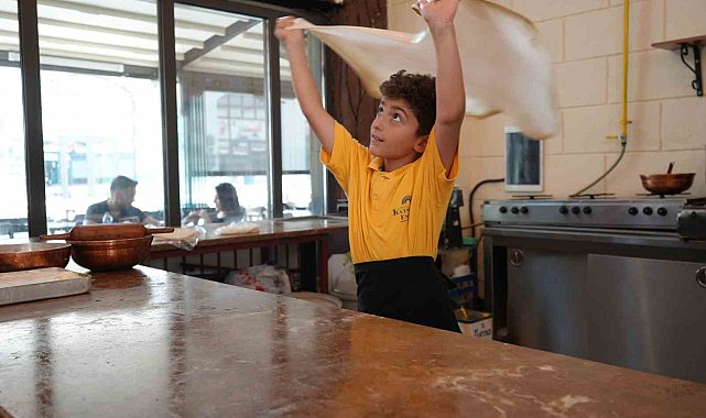 Gaziantep'te en küçük katmer ustası 9 yaşındaki Ertuğrul Yılmaz, açtığı katmerlerle usta katmercilere örnek oluyor.