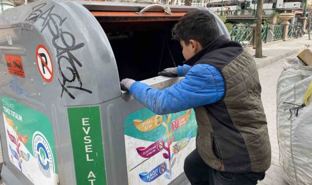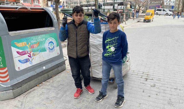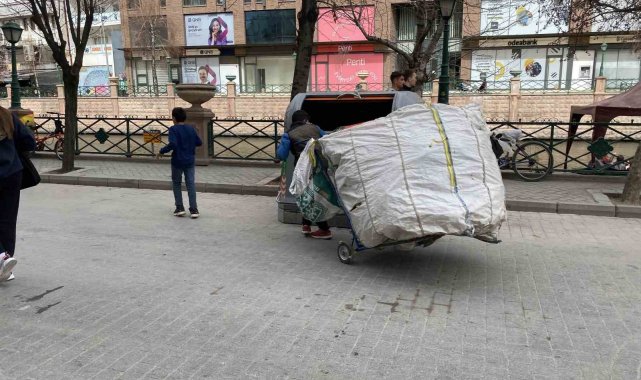 Yaşıtları okula giderken o boyundan büyük el arabası ile atık topluyor