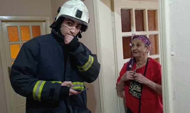 İtfaiyenin gelmesiyle yüzü gülen yaşlı kadın, "Makarnayı ocağa koyduktan sonra ekmek almak için aşağıya inerken anahtarı almadan kapıyı çekip çıktım. Anahtarı içeride unuttuğumu anlayınca polisten yardım istedim. Polis itfaiyeyi çağırdı" dedi.