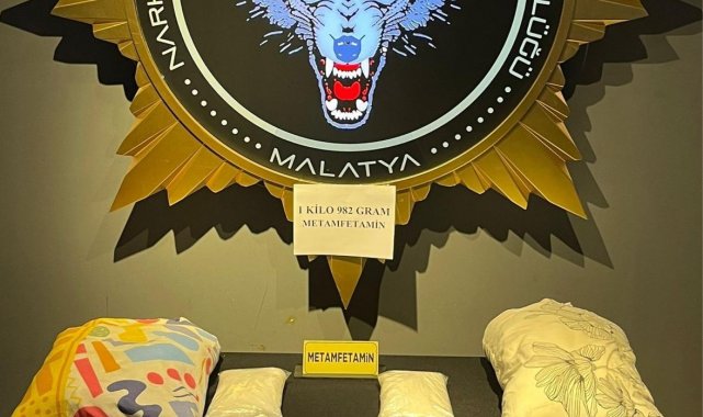 Malatya İl Emniyet Müdürlüğü Narkotik Suçlarla Mücadele Şube Müdürlüğü ekipleri, Malatya-Elazığ karayolu üzerindeki Kale yol uygulama noktasında durdurulan bir otomobilde arama yaptı. Yapılan aramada yastık içerisine gizlenmiş 1 kilo 982 gram metamfetamin ele geçirilirken, G.G.T. ve Ş.B. gözaltına alındı. 2 zanlı, polis merkezindeki işlemlerinin ardından sevk edildikleri mahkemece tutuklanarak cezaevine gönderildi.