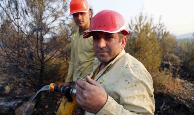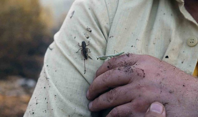 Yatağan'daki orman yangını kontrol altına alınırken, bölgede soğutma çalışmalarına başlandı. Soğutma çalışmaları sırasında alevlerden kaçan bir çekirge ile bir peygamber devesinin yangın işçisinin sırtına sığındığı görüldü. Bu anlar görenleri duygulandırdı.