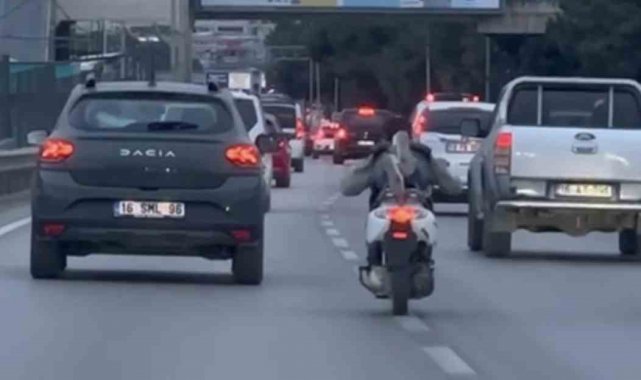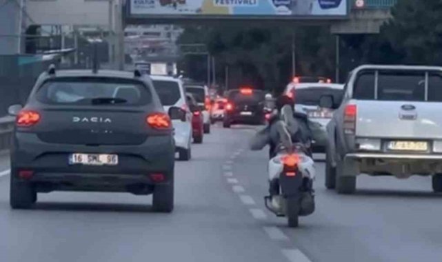 Olay, öğle saatlerinde Nilüfer ilçesi İzmir Yolu Caddesi üzerinde meydana geldi. Edinilen bilgiye göre, plakasız bir motosiklet sürücüsü, yoğun trafikte motorunun üzerine yatarak araçların arasından hızla geçti. Sürücünün bu tehlikeli hareketleri yürekleri ağza getirdi.