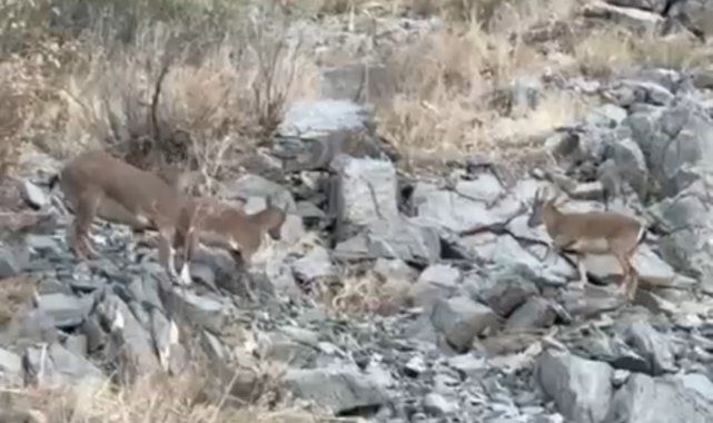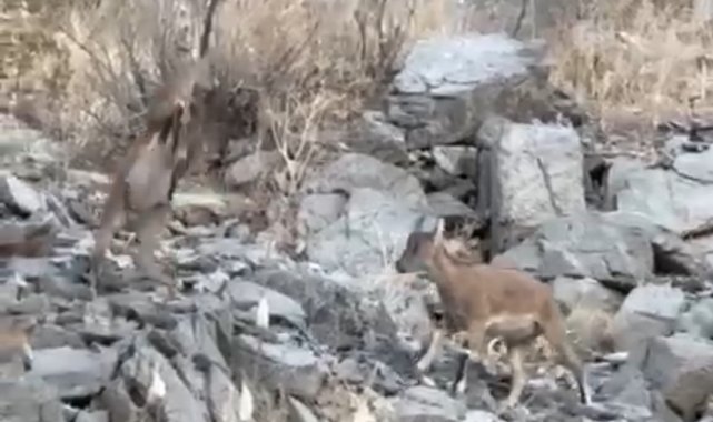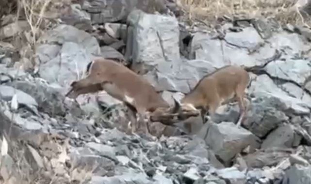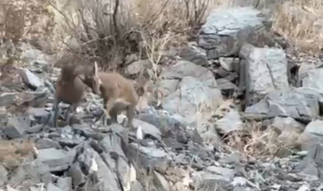 Hakkari'nin Yüksekova ilçesine bağlı Dağlıca köyünde, iki yavru dağ keçisinin kayalıklar üzerindeki sevimli çekişmesi kameralara yansıdı.