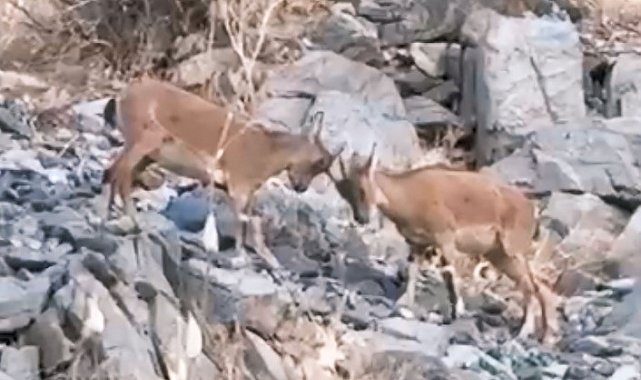 Doğanın zarafetini ve bölgedeki yaban hayatının canlılığını gözler önüne seren görüntüler, köy sakinlerinin cep telefonu kamerasıyla kaydedildi. Yavru dağ keçilerinin kayalıklar üzerinde birbirlerine kafa tutarak oyun oynadığı, zaman zaman tatlı bir çekişmeye dönüşen bu anlar, izleyenleri güldürdü.
