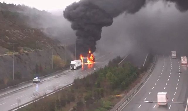 Yavuz Sultan Selim Köprüsü çıkışında seyir halinde olan tırın dorse kısmında henüz belirlenemeyen bir nedenle dumanlar yükselmeye başladı. Alevlerin yükseldiği o anlar kameraya yansırken, gökyüzünü dumanların kapladığı tır yangını itfaiye ekiplerinin müdahalesi ile söndürüldü.