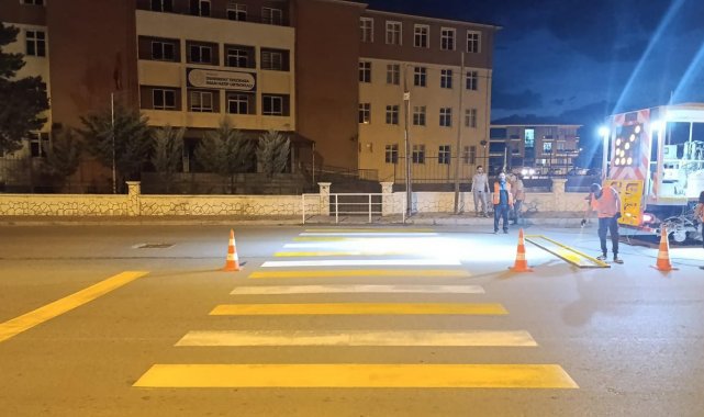 Yaya geçidi çizgileri boyanarak daha belirgin hale getirildi