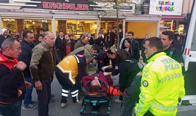 Yaya geçidinde motosikletin çarptığı kadın ağır yaralandı