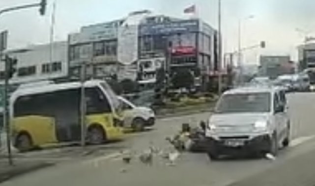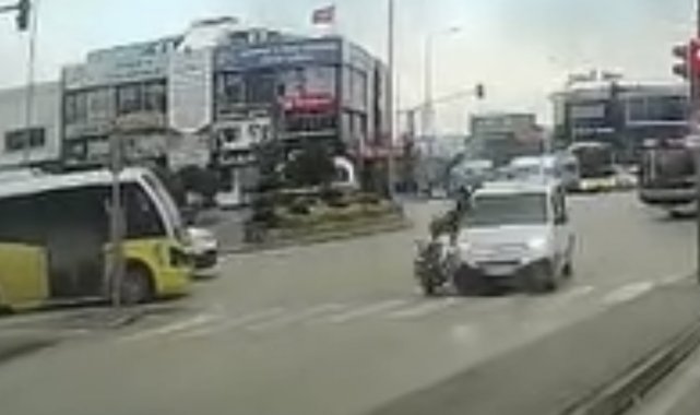 Bursa'da yaya geçidinden geçmek isteyen motosiklete otomobil çarptı. O anlar kameraya anbean yansıdı.