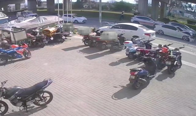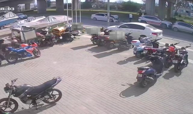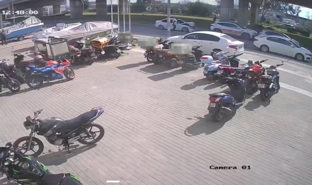 Antalya'nın Manavgat ilçesinde yaya geçidinden geçmekte olan yayalara yol vermek için duran otomobile motosikletin arkadan çarpması sonucu meydana gelen kazada motosiklet sürücüsü yaralandı. Kaza anı güvenlik kamerasına an be an yansıdı.