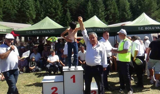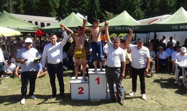 Bolu'da geleneksel olarak her yıl düzenlenen Karapınar Bayramı'nda yapılan karakucak güreşleri şampiyon olan 8 yaşındaki Hamza Demirhan, ödülünü almak için çıktığı kürsüye ayakkabılarını çıkararak çıktı.