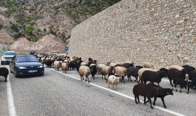 Karayollarında yoğun araç trafiğiyle karşı karşıya kalan sürüler, hem sürücülere hem de besicilere zor anlar yaşatıyor.