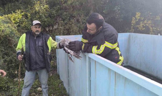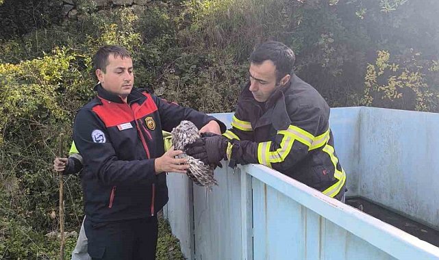 Hatay'da arıtma tesisine düşen baykuş, itfaiye ekipleri tarafından kurtarıldı.