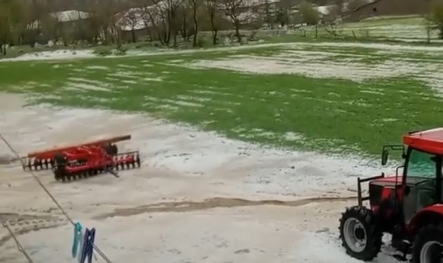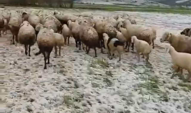 Tokat'ta akşam saatlerinde etkili olan gök gürültülü sağanak yağış, yüksek kesimlerde doluya dönüştü. Artova ve Yeşilyurt ilçelerinde yaklaşık 15 dakika boyunca etkili olan dolu yağışı, çevreyi adeta karla kaplanmış gibi beyaza bürüdü. Dolu yağışına yaylada yakalanan küçükbaş ve büyükbaş sürüleri ilerlemekte güçlük çekti. Hayvanların zorlu anları cep telefonu kamerasına yansıdı.