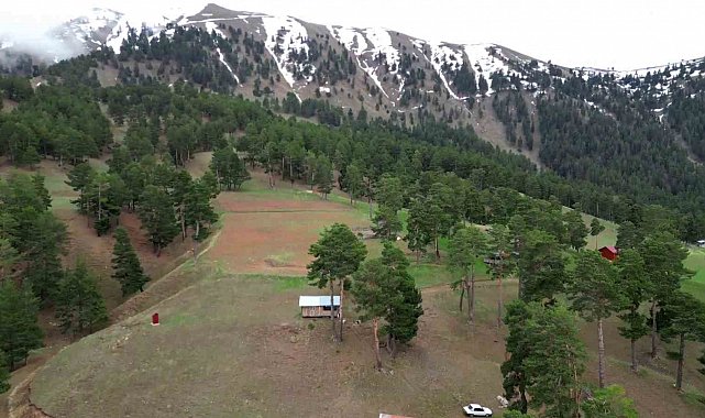 Yeşil ile beyazın buluştuğu manzara, dron ile havadan görüntülendi. Doğaseverler ve yaylada bulunan vatandaşlar, yazdan kalma günlerin ardından erken yağan karın oluşturduğu eşsiz güzelliğe hayran kaldı.