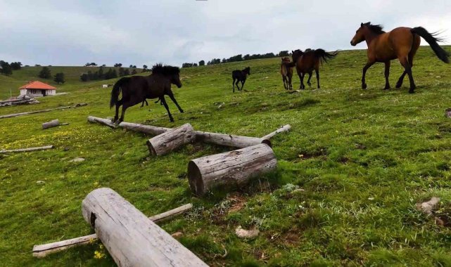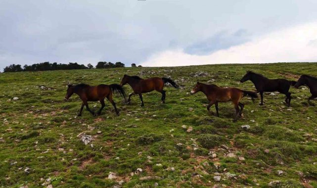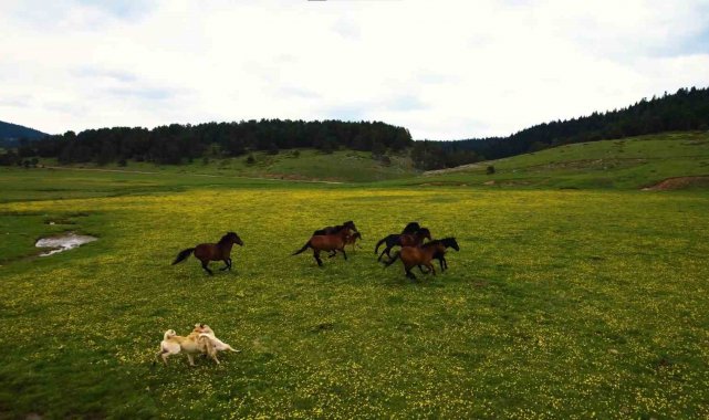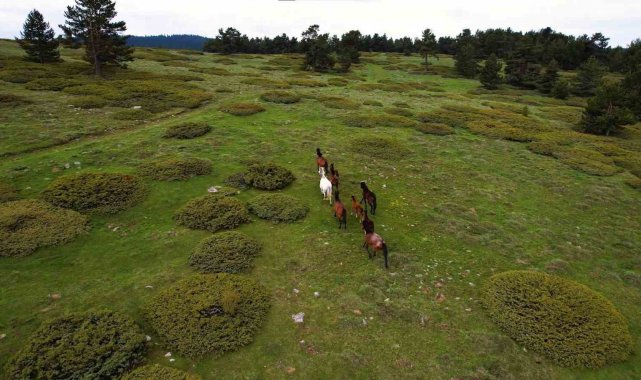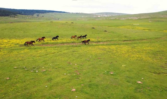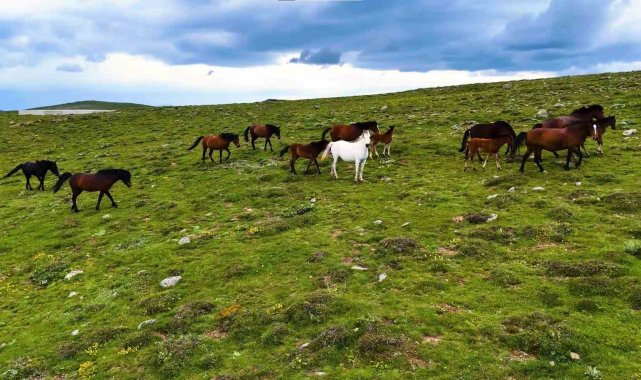 Yaylaların özgür ruhları yılkı atları havadan görüntülendi