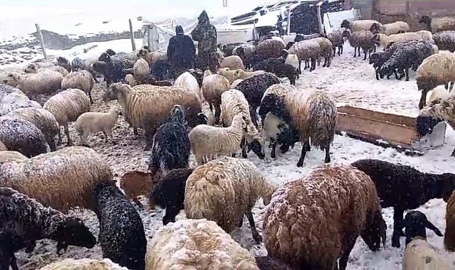 Yaylaya çıkan besicilerin kar altında zorlu mesaisi
