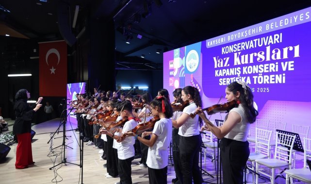 Büyükşehir Belediyesi Konservatuvarı'nın iki şubesinde 2025 yaz döneminde 56 usta öğretici eşliğinde 940 çocuk bağlama, bateri, gitar, keman, tiyatro, ney, piyano, resim ve yan flüt branşlarında, 850 yetişkin ise bağlama, gitar, keman, tiyatro, ney, piyano, resim, ud ve yan flüt dallarında eğitim aldı. Kış döneminde ise çocuklara yönelik 22 farklı branşta hafta sonu, yetişkinlere ise hafta içi olmak üzere 6 ay sürecek kurslar planlanıyor. Konservatuvar Yaz Kursları Kapanış Konseri ve Sertifika Töreni, Kadir Has Kültür ve Sanat Merkezi'nde gerçekleşti. Törene Büyükşehir Belediye Başkanı Dr. Memduh Büyükkılıç da katılarak, geleceğin sanatçıları ile buluştu. Gerçekleştirilen törene Büyükşehir Belediye Başkanı Dr. Memduh Büyükkılıç'ın yanı sıra AK Parti Kayseri Milletvekili Ayşe Böhürler, AK Parti Kayseri Kadın Kolları Başkanı Meral Koşar, öğrenciler ve aileler katıldı. Törende konuşan Başkan Büyükkılıç, "Sevgili gençlerimiz ve bizlere güvenen, bizleri seven velilerimiz iyi ki varsınız. Sizlerin güvenine inşallah layık oluruz" dedi.
