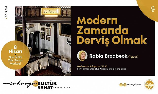Sakarya Büyükşehir Belediyesi Nisan Kültür Takvimi birbirinden değerli konuklar ile sanatseverleri buluşturmaya devam ediyor. Programlar çerçevesinde, fikirleri ve hayat hikayesiyle hem Türkiye'nin hem de dünyanın tanıdığı yazar Rabia Brodbeck Sakarya'da sevenleriyle buluşacak. Modern hayatın hızına karşı bir duruş geliştirmeyi ve içe dönüşün imkanlarını yeniden düşünmeyi amaçlayan "Modern Zamanda Derviş Olmak" söyleşisi Ofis Sanat Merkezi'nde (OSM) gerçekleştirilecek. Samimi bir sohbet eşliğinde gerçekleşecek program, 8 Nisan Salı günü saat 19.00'da başlayacak. Büyükşehir, tüm sanatseverleri etkinliğe davet etti.