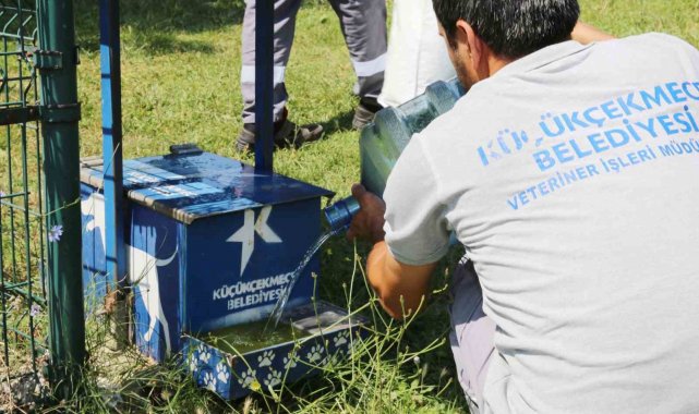 Yazın sıcak günlerinde Küçükçekmece Belediyesi'nden sokak hayvanlarına can suyu çağrısı