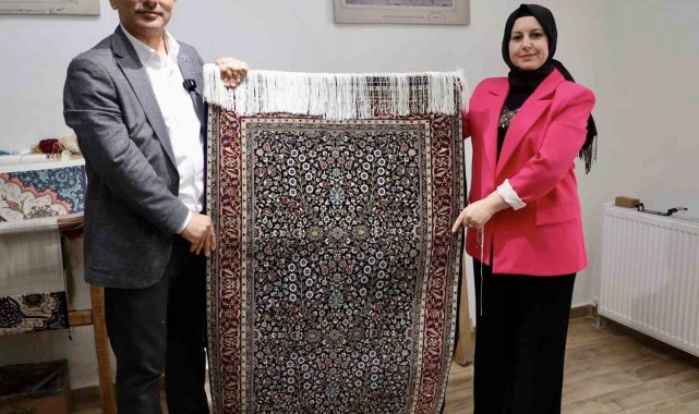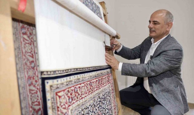 Körfez Belediye Başkanı Şener Söğüt, Başkan Yardımcısı İbrahim Çırpan ve Koordinatör Cengiz Öztürk'ün de makasla tezgah kesimini gerçekleştirdiği halı, özel olarak müze içerisinde sergilenecek.