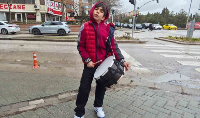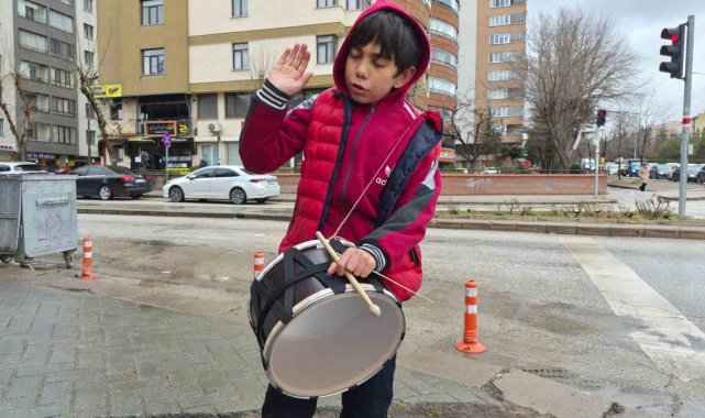 Eskişehir'de Ramazan Bayramı'nda yeğeniyle birlikte harçlık toplamak için ilginç bir yöntem seçen küçük Yakup Can, trafik ışıklarında bekleyen sürücülere davul çalarak keyifli anlar yaşattı.