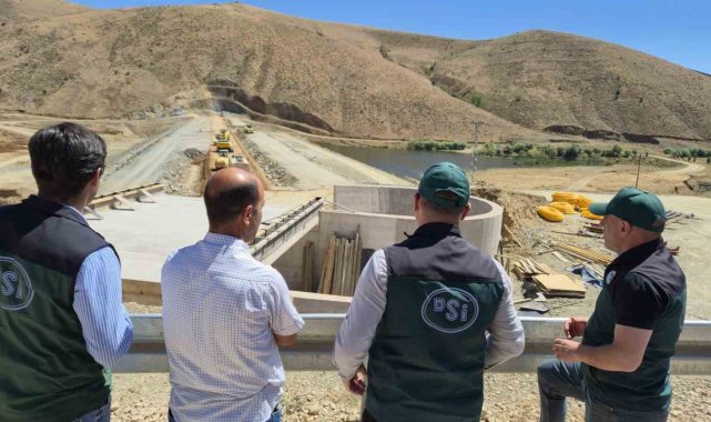 Devlet Su İşleri (DSİ) 22. Bölge Müdürü Fatih Kişi, inşaat alanında incelemelerde bulunarak, devam eden imalatların son durumu hakkında DSİ Bayburt Şube Müdürü Muhammer Adanur'dan bilgi aldı.