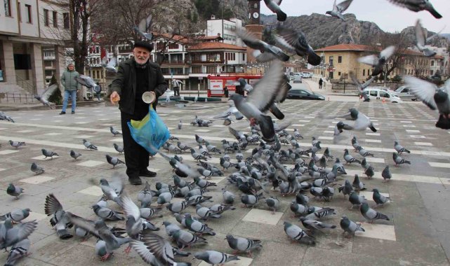 Amasya'da 84 yaşındaki Cahit Kalaycı, 20 yıldır emekli maaşından ayırdığı parayla aldığı yemler ve topladığı bayat ekmeklerle sokaklardaki güvercinleri besliyor. Kuşların aç kalmaması için her gün kahvaltıdan önce şehri dolaşan güvercinlerin 'Yemci Dede'si kendisini evinde ziyaret eden Vali Önder Bakan'ın getirttiği 4 çuval yemi duyunca oturduğu yerde oynayıp sevindi.