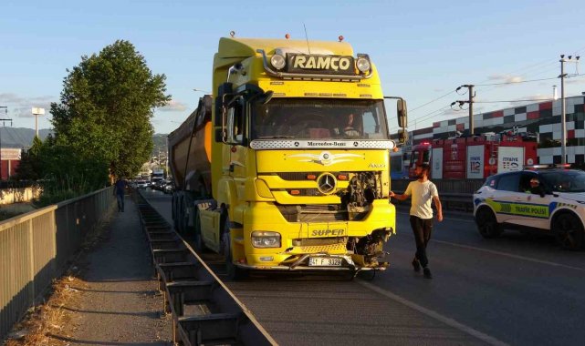 Yeni alınan araca kamyon çarptı: 1 yaralı