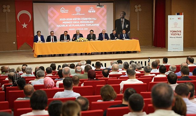 Düzce Namık Kemal İlkokulu Konferans Salonunda 2025-2026 eğitim öğretim yılı merkez ilçe okul müdürleri hazırlık ve planlama toplantısı yapıldı. Vali Vekili Şevket Cinbir'in de katıldığı, İl Milli Eğitim Müdürlüğü tarafından düzenlenen toplantıda; aile yılı etkinlikleri, veli akademileri, yeşil vatan için yapılması planlanan çalışmalar, Türkiye Yüzyılı Maarif Modeli doğrultusunda yürütülecek uygulamalar ele alındı. Toplantıda ayrıca, yeni eğitim öğretim yılı hazırlıkları çerçevesinde ücretsiz ders kitaplarının dağıtımı, okul binalarında bakım-onarım ve fiziki ortamların iyileştirilmesi çalışmaları ile taşımalı eğitim ve servis hizmetleri, pansiyonlara öğrenci yerleştirme süreçleri, temiz ve güvenli okul uygulamaları, iş sağlığı ve güvenliği, geri dönüşüm ve enerji tasarrufu gibi konular görüşüldü. Öğrenci kıyafetleri, kantinlerin işleyişi ve spor alanlarının kullanımına ilişkin hususlar değerlendirildi.