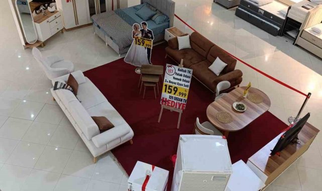 Cumhurbaşkanı'nın açıklamalarına destek verdiklerini belirten Bayrampaşa Akvaryum Yaşam ve Mobilya Çarşısı esnafı içerisinde beyaz eşyadan, oturma ve yatak odası takımlarından oluşan bir çeyiz setini 159 bin TL'den satışa sundu. Açıklanan kredi müjdesine çarşı olarak destek vermek istediklerini belirten Genel Müdür H. Mehmet Karaçuha, "150 bin liralık krediye istinaden bu fiyata gençlerin evini tamamlamaya çalışıyoruz. Paketimizde yatak odası, oturma grubu, yemek odası, beyaz eşya setimiz, zigon sehpa ve televizyonumuz hediye. Tamamen bir ev düzüyoruz. Biz de devletimizin gençlere verdiği bu imkanı desteklemek istedik" dedi.