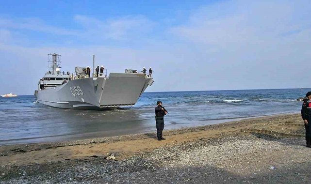 İstanbul'da Anadolu Tersanesi'nde Türk Deniz Kuvvetleri için üretilen Yeni Tip Çıkarma Gemisi Ç-159'un testleri çerçevesinde Yalova'da kıyıya çıkarma yapıldı.