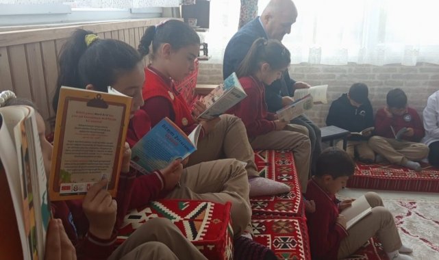 Bayburt'un Aydıntepe ilçesinde bulunan Şehit Oktay Altuntaş İlkokulunda, öğrencilerin okuma alışkanlığını güçlendirmek amacıyla kitap okuma etkinliği yapıldı.
