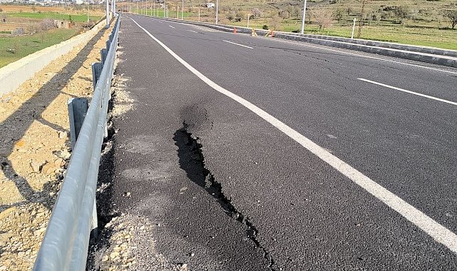 Yeni yapılan yolda çatlak ve göçükler oluştu