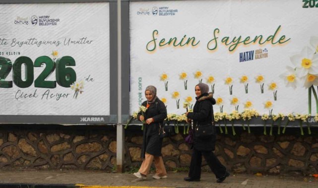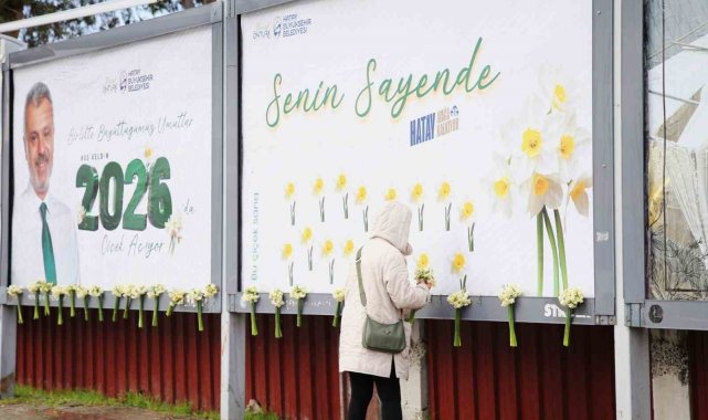Hatay Büyükşehir Belediyesi (HBB), 6 Şubat 2023'te yaşanan deprem sonrası çok zor şartlar altında yaşamalarına rağmen tam bir birlik, beraberlik ve dayanışma örneği göstererek hayata tutunan ve şehrin kalkınmasına destek veren Hatay halkına minnettarlığını göstermek adına farklı bir etkinliğe imza attı. HBB ekipleri, şehrin faklı noktalarındaki billboardlarda HBB Başkanı Mehmet Öntürk'ün, "Birlikte Büyüttüğümüz Umutlar 2026'da Çiçek Açıyor" yazılı tebrik mesajlarının olduğu görsellerin üzerine Hataylı vatandaşlara yılbaşı hediyesi olarak demet demet nergis çiçekleri yerleştirdi.