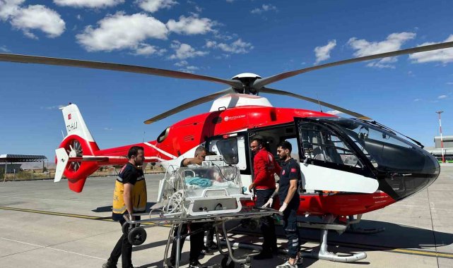 Yenidoğan hasta için helikopter ambulans havalandı