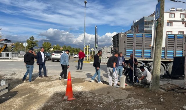 Yenipazar'da yol ve kaldırım çalışmaları sürüyor