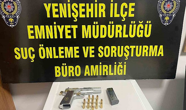Yenişehir İlçe Emniyet Müdürlüğü ekiplerinin yaptıkları uygulamada üzerinde yapılan aramada 30 gram uyuşturucu madde ele geçirilen C.S. (28) gözaltına alındı. Şüpheli ifadesi alınmak üzere karakola götürüldü. Uygulamada F.F.'nin (27) yapılan üst aramasında ise 1 adet ruhsatsız tabanca ile 14 adet fişek ele geçirildi.