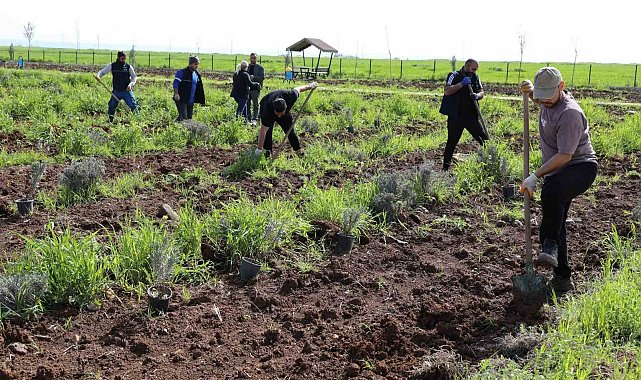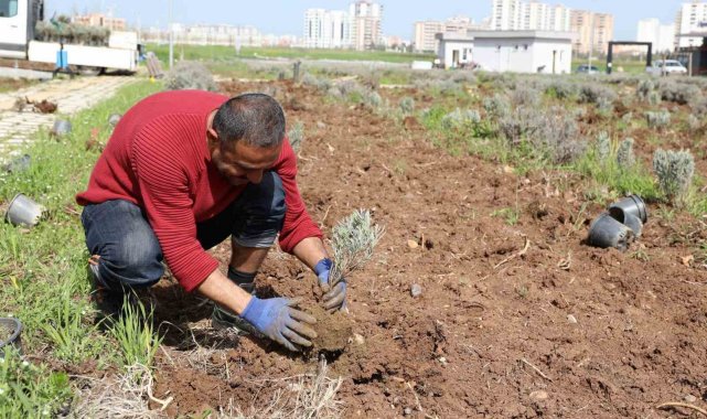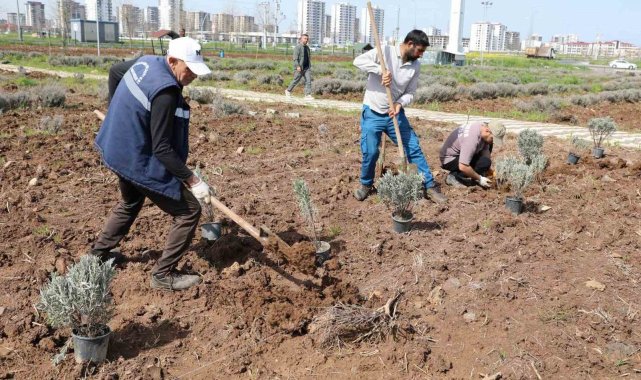 Diyarbakır'ın Yenişehir İlçe Belediyesi, çok yıllık bitki grubunda yer alan ve kentin iklimine uygun lavanta bitkilerinden oluşturduğu parkı elden geçiriyor.
