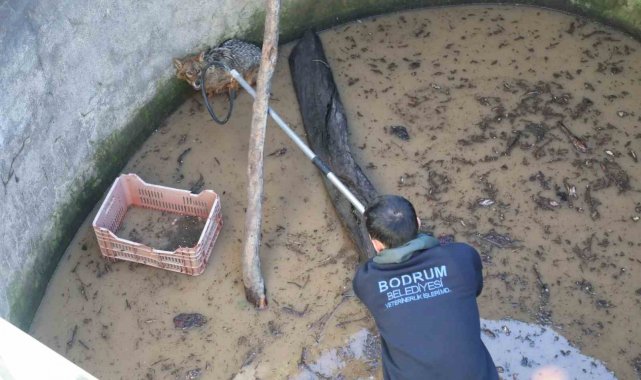 Bodrum Belediyesi Veteriner İşleri ve Afet İşleri Müdürlüğü ekipleri, yer sarnıcına düşen tilkiyi başarılı bir operasyonla kurtardı.