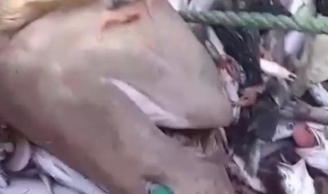 Alınan bilgiye göre, Mersin'in Silifke ilçesinden tekne ile Akdeniz'in 15 mil açığına açılıp trol ağ ile avlanan balıkçılar 8 künt burunlu altı solungaçlı boz camgöz köpekbalığı yakaladı. Köpek balıklarını görünce şaşıran balıkçılar, o anları da cep telefonu ile kaydetti.